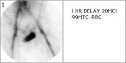 Normal tracer activity is seen in the blood pool of the abdominal aorta, common iliac arteries, femoral arteries, liver, spleen and genitalia on all of the interval images. No evidence for abnormal tracer uptake is noted ectopic to the blood pool that would be consistent with an active GI bleed.